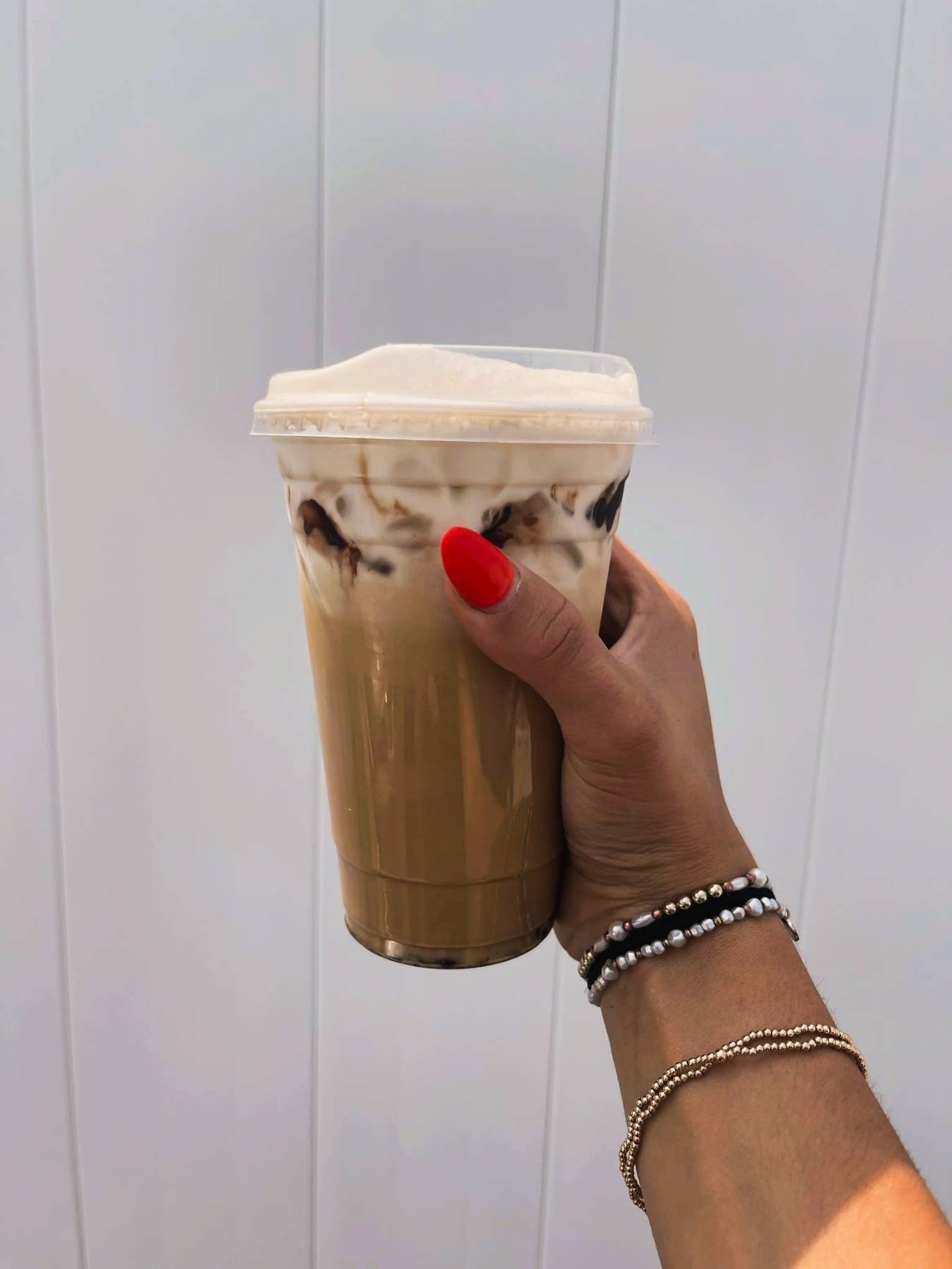 Iced Latte featuring Coconut & Salted Caramel topped with Coconut Cold Foam & Chocolate Drizzle!